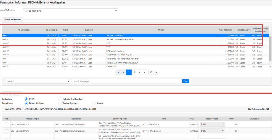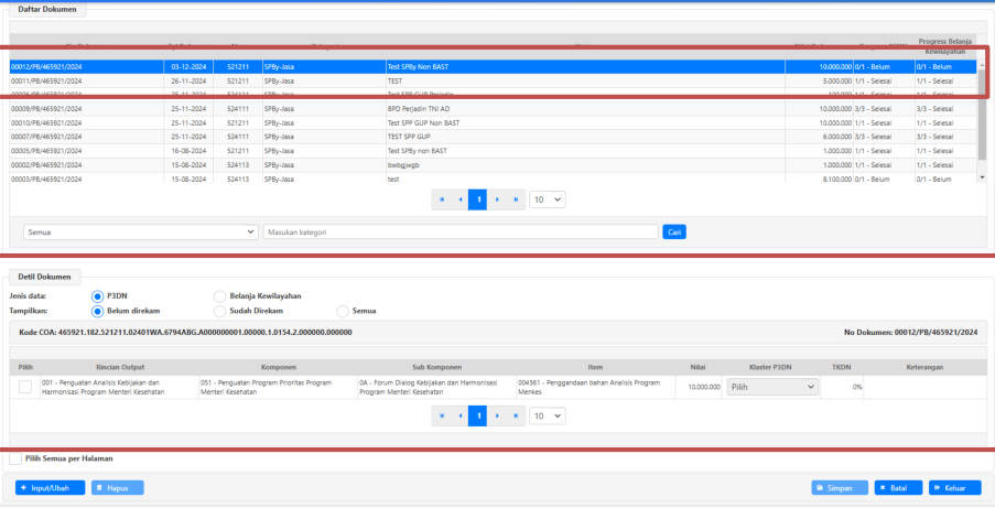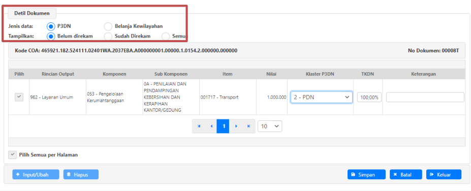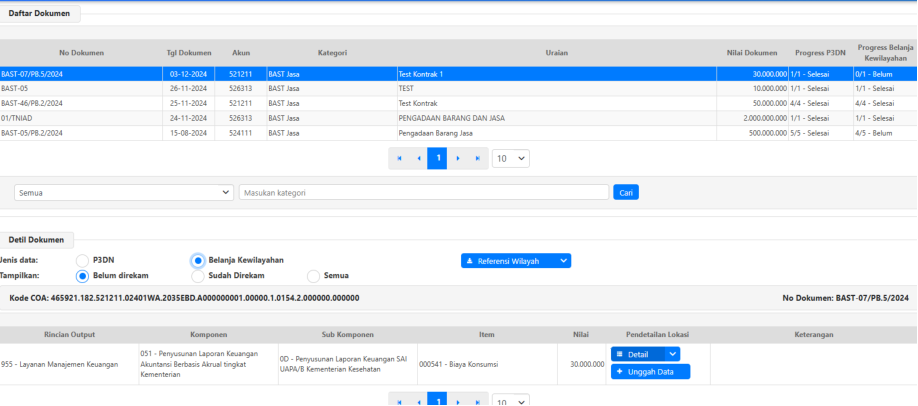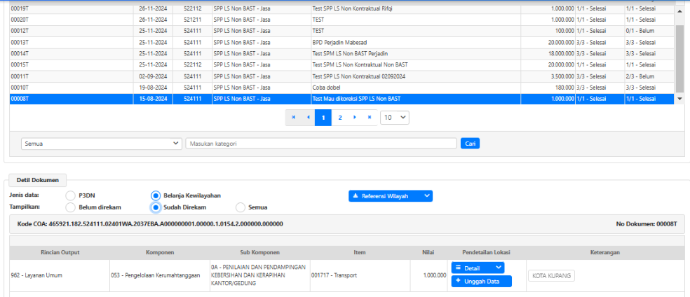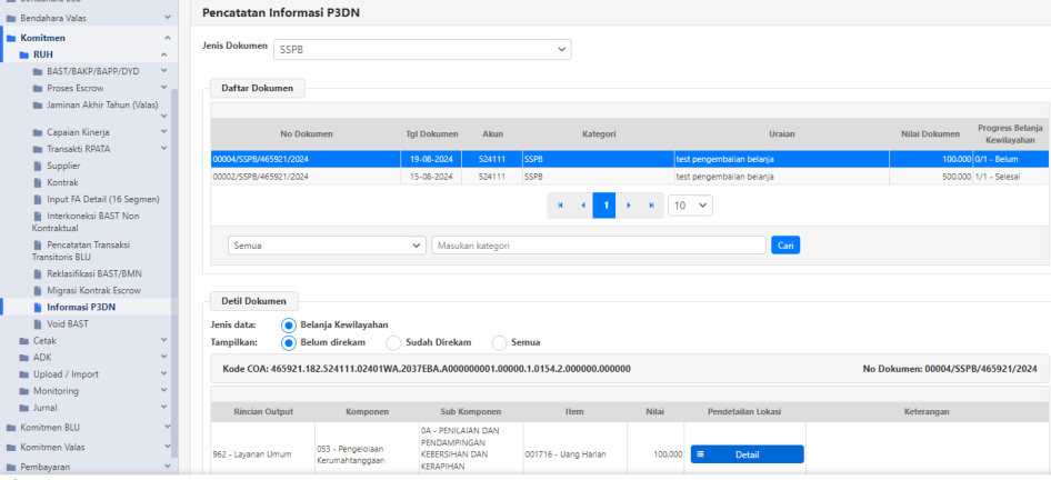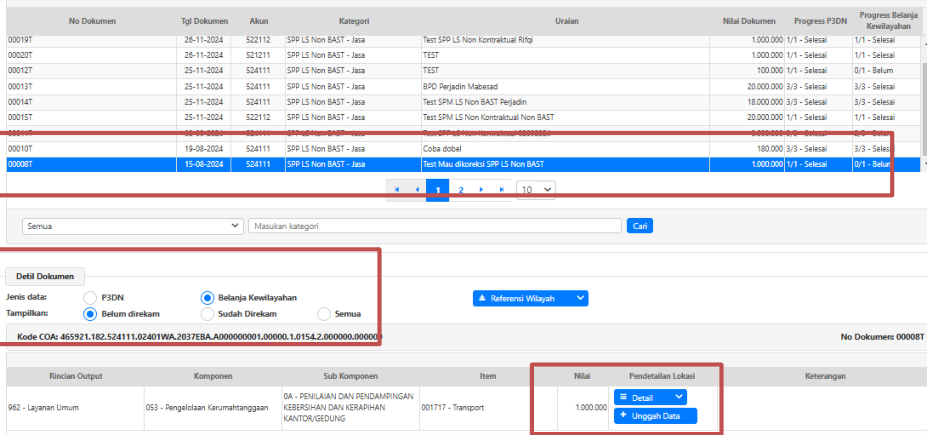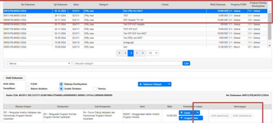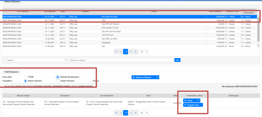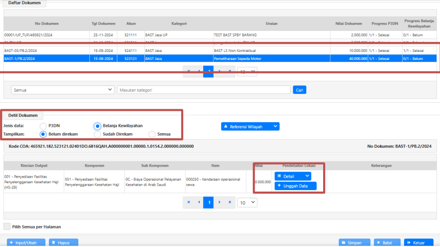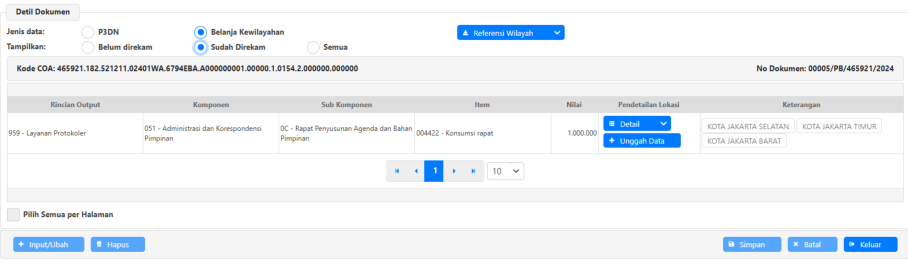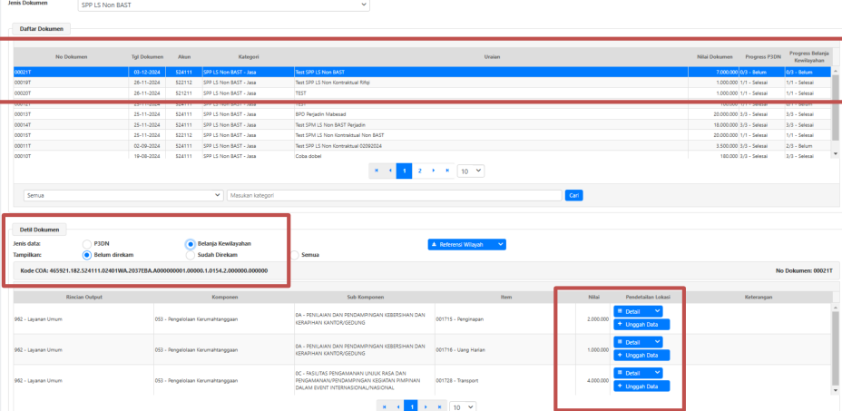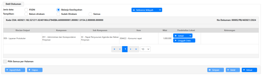 d) Klik “Detail” pada form Detil Dokumen Belanja Kewilayahan.