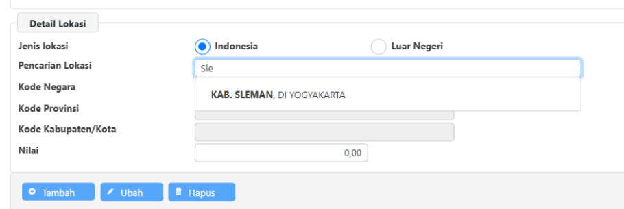 l) Pada menu pendetailan lokasi kegiatan isikan data sebagai berikut pada masing
