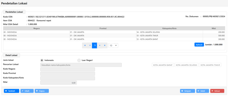 berdasarkan lokasi kegiatan dan dapat memastikan berapa dana APBN yang digunakan di