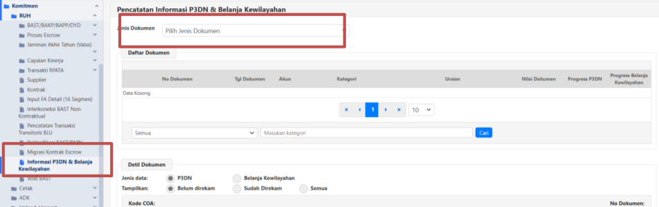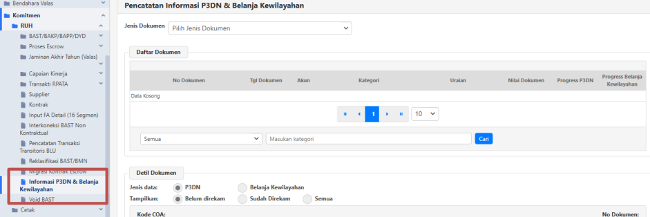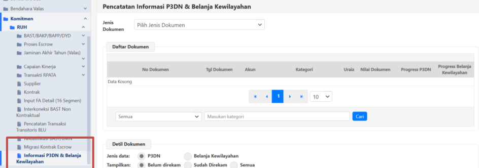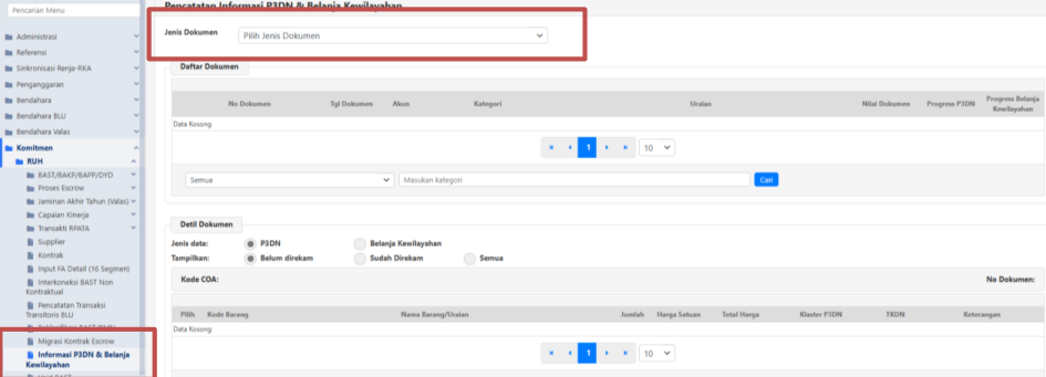 b) Pilih modul komitmen -> RUH -> Informasi P3DN;