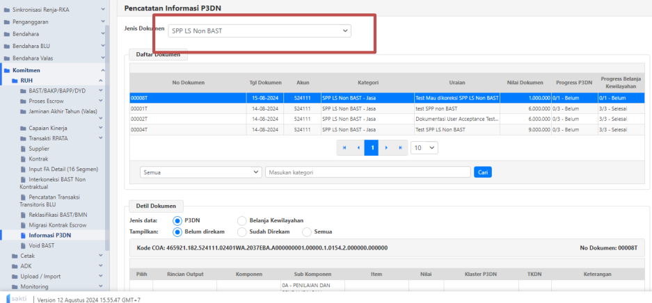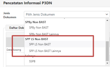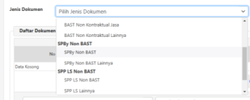 b) Pilih jenis dokumen SPBy Non BAST yang sebelumnya telah direkam