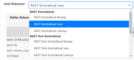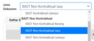 b) Pilih jenis dokumen BAST Kontraktual yang telah direkam sebelumnya.