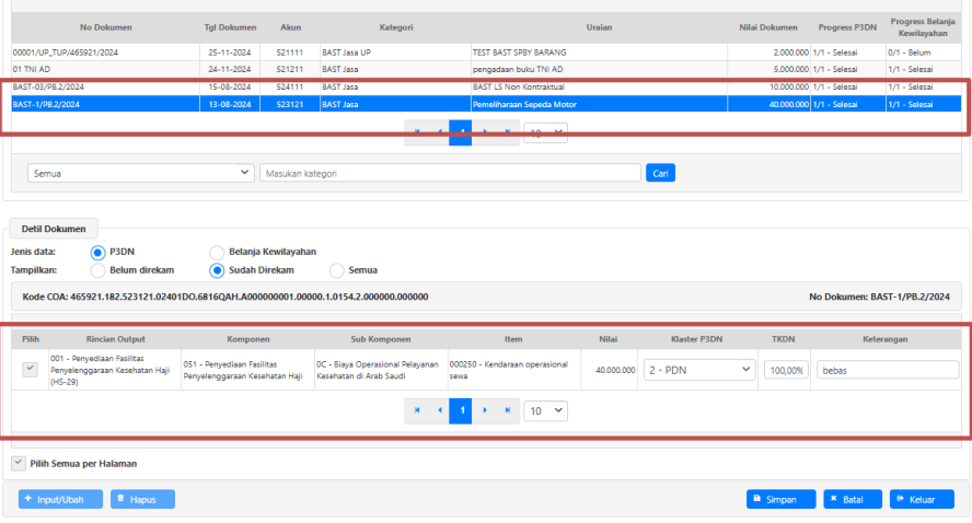 artinya atas 1 item yang direkam pada menu BAST sebelumnya telah dilakukan