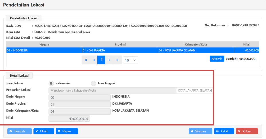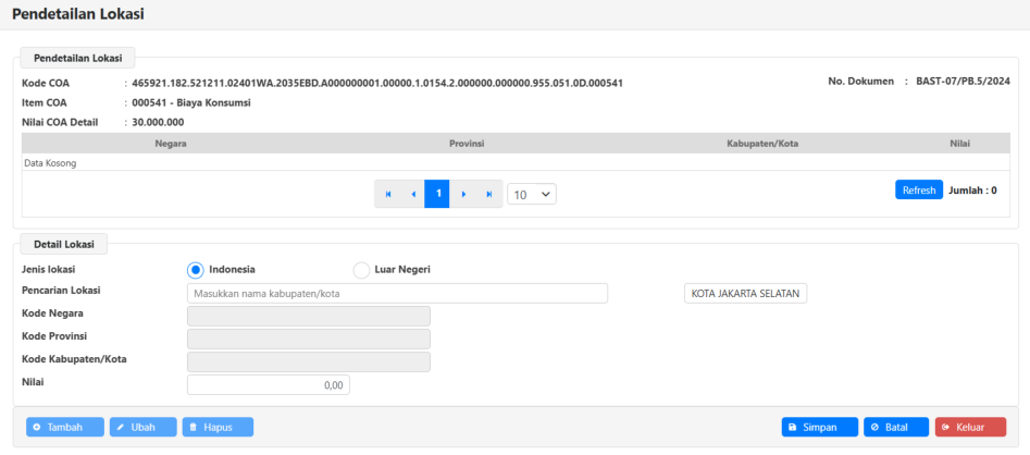 - Juknis Pengisian Lokasi kegiatan atas Dokumen Sumber BAST Non Kontraktual