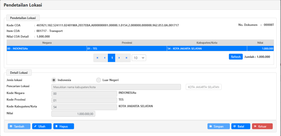 dan pada tabel keterangan pendetailan lokasi akan muncul resume pengisian