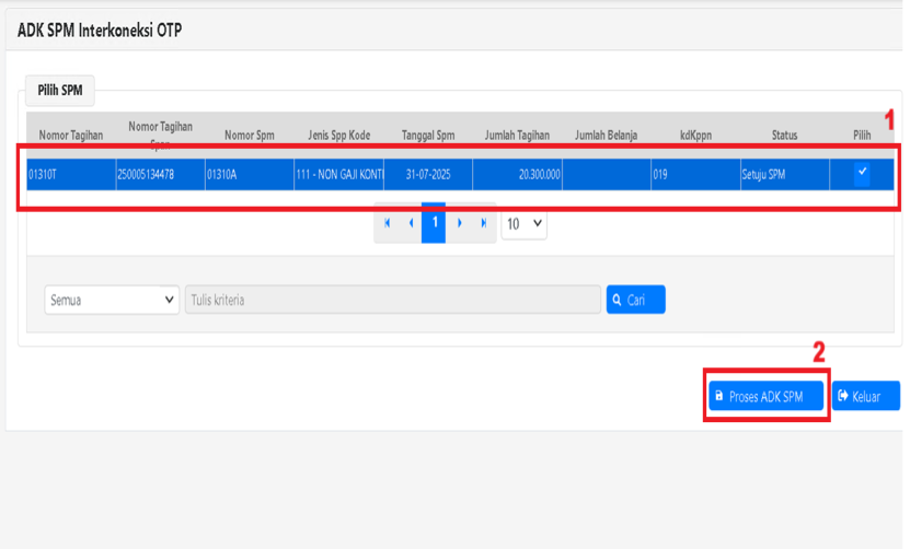 1. Pilih data SPM yang akan kirim Adk SPM;