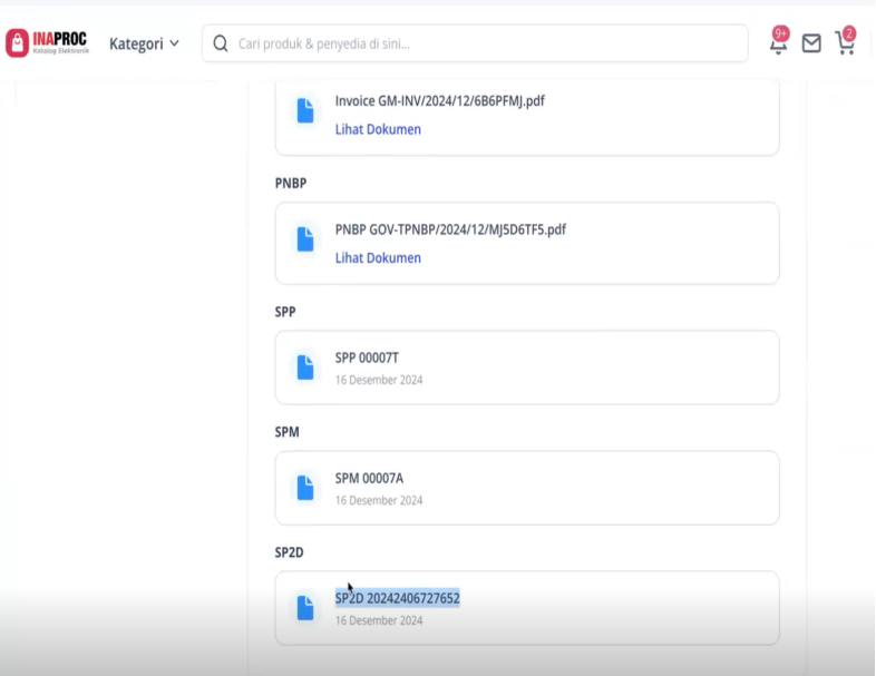 Nomor dan tanggal dokumen yang berasal dari SAKTI dapat dilihat pada aplikasi INAPROC.