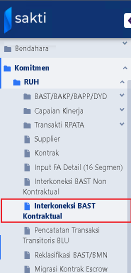 b. Letak Menu : Komitmen 🡪 RUH 🡪 Interkoneksi BAST Kontraktual.