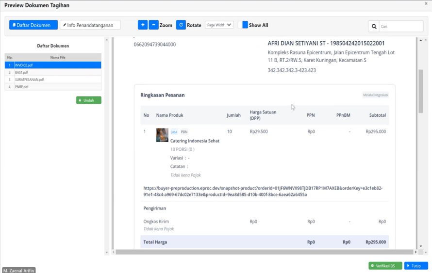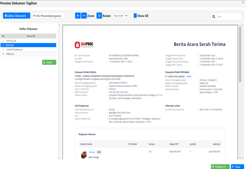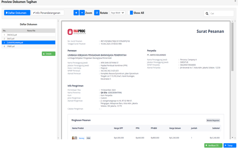 3. Klik Preview Dokumen PDF, untuk melihat dokumen dari InaProc ;