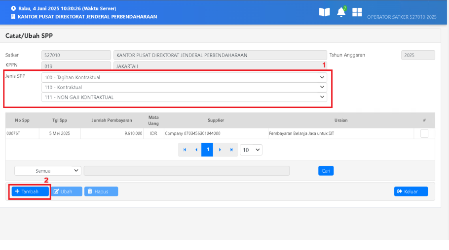 2. Klik tombol “Tambah” untuk masuk ke form SPP.