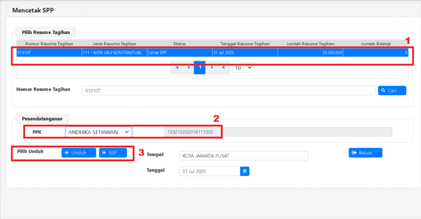 3. Klik ‘Unduh’ untuk mengunduh SPP atau ‘SSP’ untuk mengunduh Pajak.
