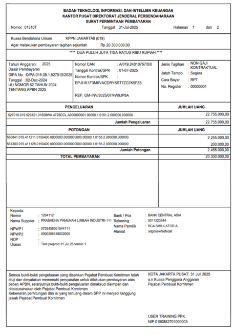 Contoh hasil cetakan SPP :