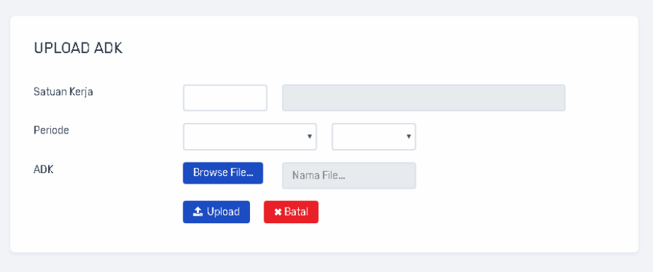 - Menu upload ADK data pegawai yang berasal dari