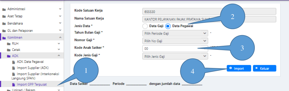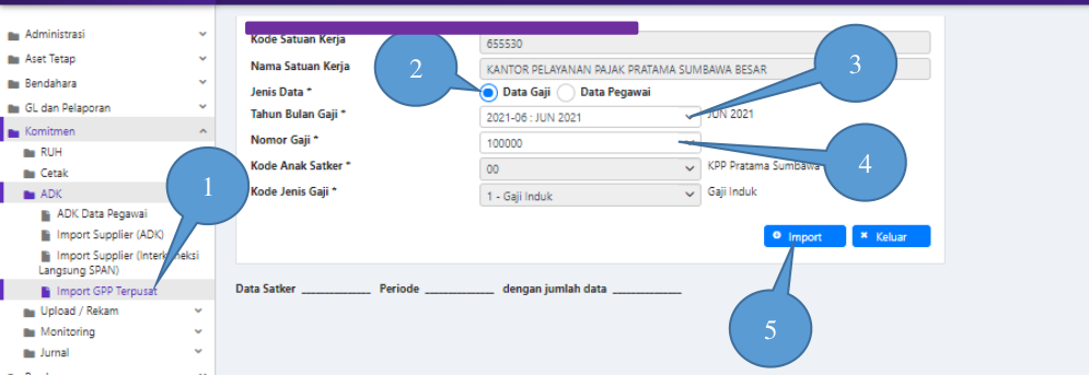 1. Masuk ke Modul Komitmen → ADK → Import GPP Terpusat;