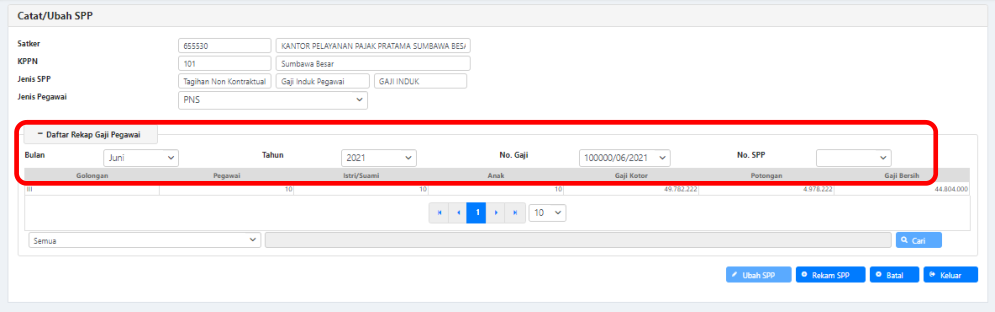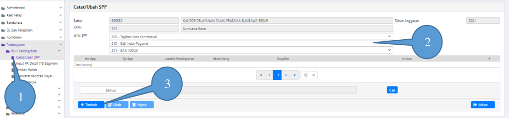 4. Perekaman SPP/SPM Gaji pada menu “Catat/Ubah SPP” pada modul pembayaran