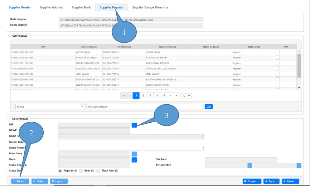 (pegawai) sehingga tab Supplier Pegawai menjadi aktif.