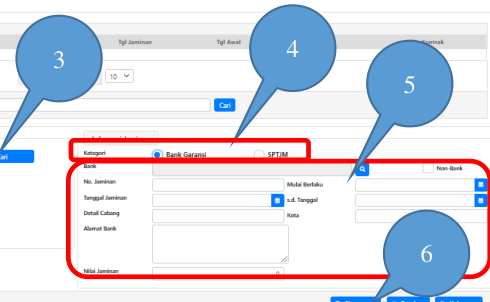 sebelah kanan kolom Nomor Jaminan. Silahkan pilih data Bank Garansi/SPTJM yang
