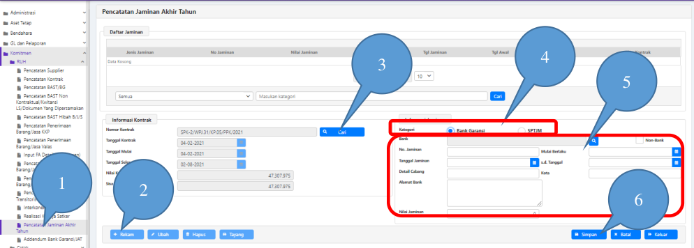 merekam informasi Bank Garansi/SPTJM dengan cara sebagai berikut: