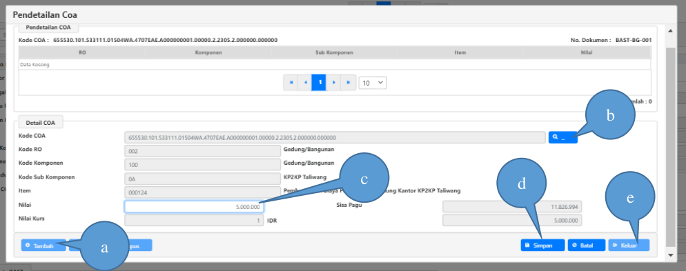 5. Lakukan Pendetailan COA atas BAST ini, langkah pendetailan coa sebagai berikut: