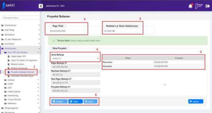 - Klik tombol Simpan untuk menyimpan hasil input Proyeksi.