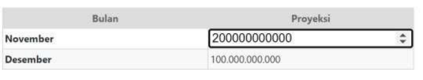 - Input Proyeksi tidak bisa kosong namun dapat diinput dengan nilai 0