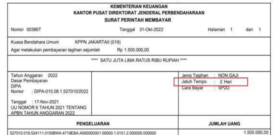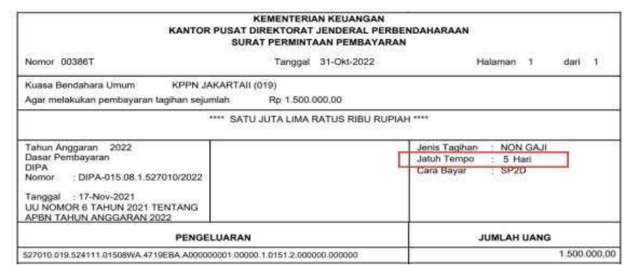 b. Jatuh tempo pada Cetakan SPP adalah 5 hari kerja / terjadwal.