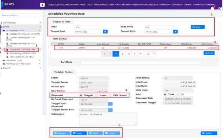 masuk ke menu KPPN → Manajemen Satker → Scheduled Payment Date.