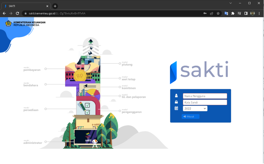 Login aplikasi SAKTI dengan responsibility sebagai Pejabat Pembuat Komitmen. Masuk pada Komitmen