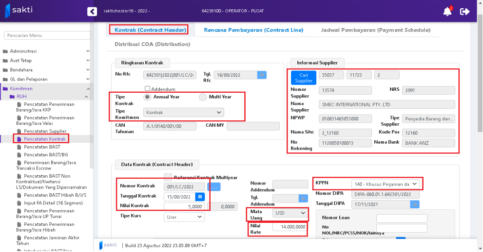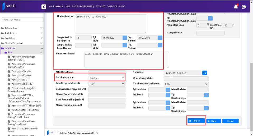 Nomor Kontrak dan tanggal kontrak diinput manual.
