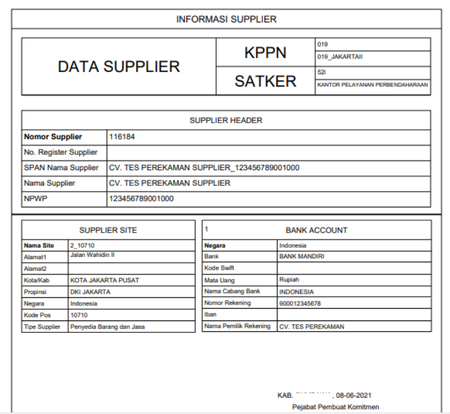 Setelah ADK Supplier berhasil dibuat, Data Supplier tersebut akan secara otomatis terkirim