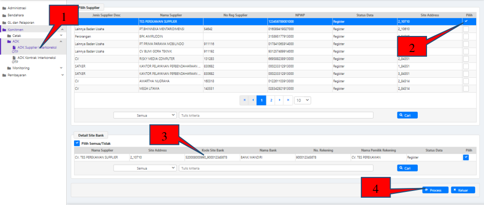 - Masuk ke modul Komitmen → ADK → ADK Supplier interkoneksi OTP;