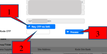 - Klik “Req. OTP via SMS”, setelah tombol ini diklik maka aplikasi akan mengirimkan
