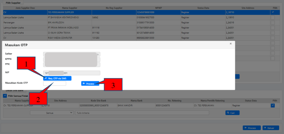- Klik Proses untuk melanjutkan ke form OTP;