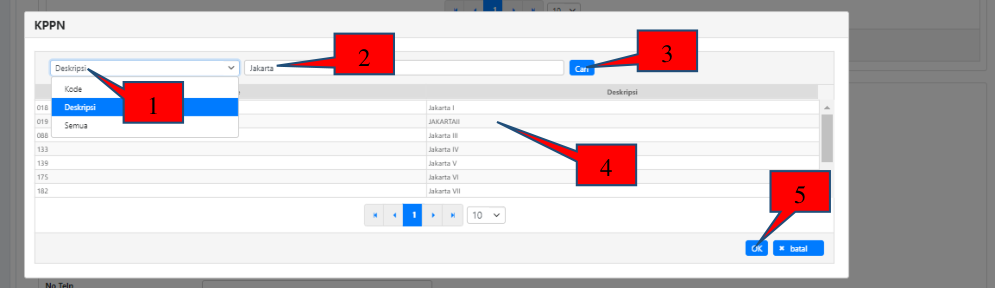2. Isikan kriteria pencarian, pada contoh diatas kolom pencarian diisi “Jakarta” karena