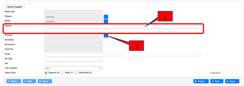 - Lanjutkan pengisian pada kolom Alamat supplier;
