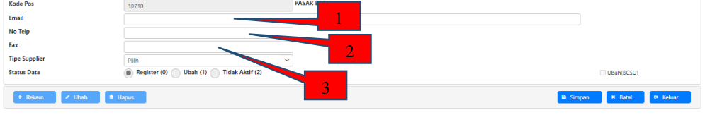 3. Untuk pengisian informasi Alamat dan Kontak supplier (Email – No. Telp - Fax)