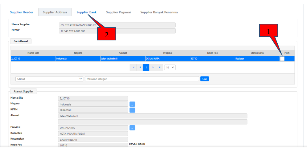 2. Klik Tab Supplier Address.