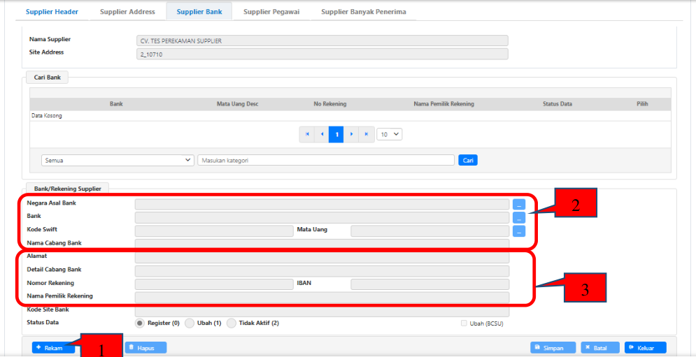 2. Tab Supplier Bank di bagian atas kolom akan aktif. Klik pada tab tersebut.
