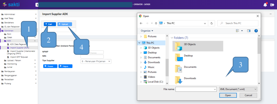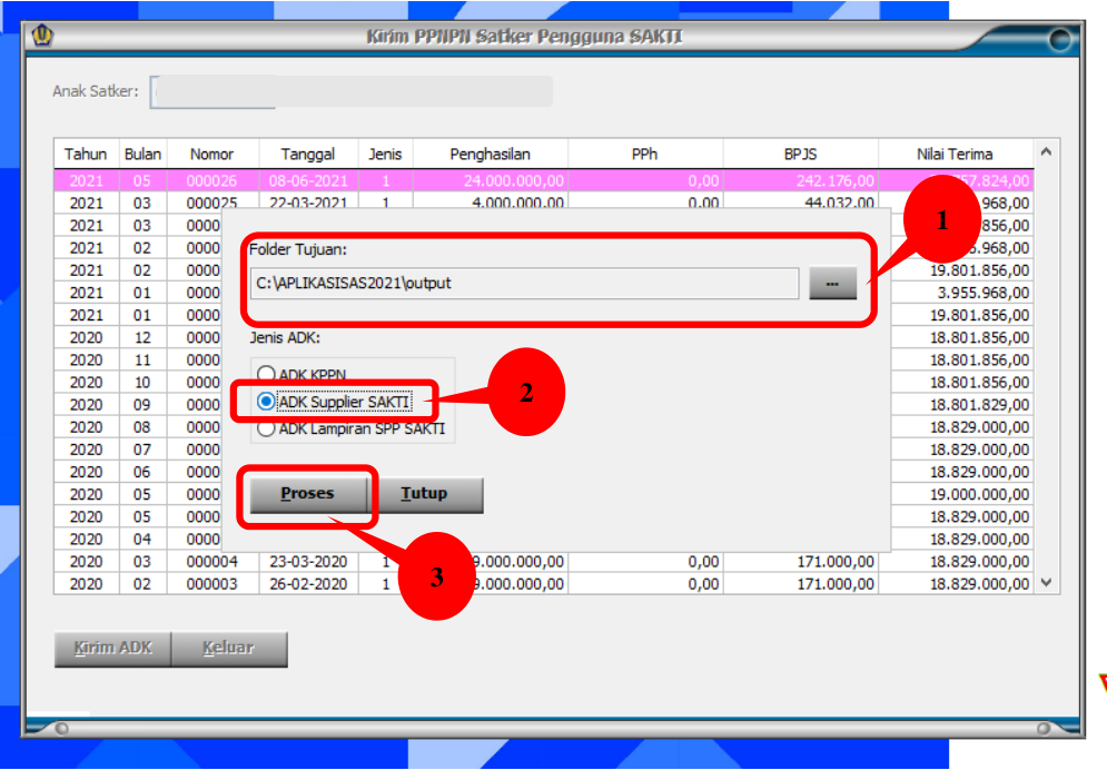 - Pilih opsi ADK Supplier SAKTI;