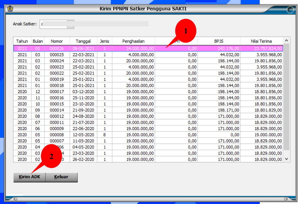 Masuk ke menu PPNPN → Utiliti → Kirim ADK Satker Pengguna SAKTI.