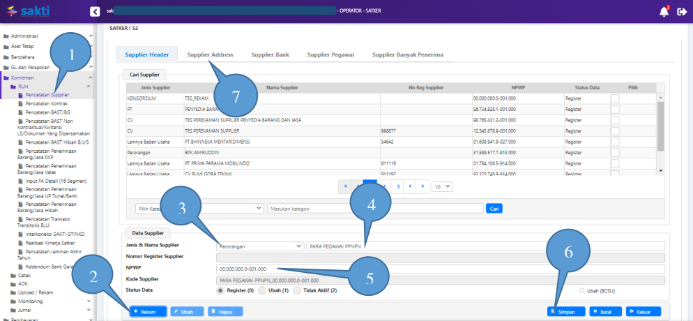 - Tuliskan nama Header Supplier PPNPN yang akan direkam;