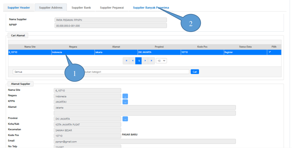 Klik tab Supplier Banyak Penerima.