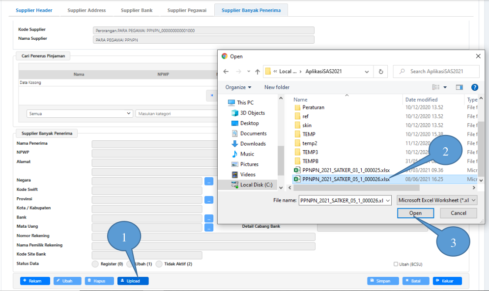 - Pilih ADK Supplier PPNPN yang telah di-create dari Aplikasi SAS;