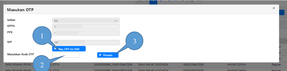 4. Klik Proses untuk mengaktifkan form OTP.