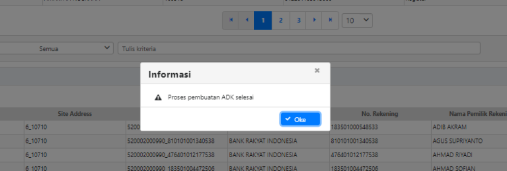 2. Setelah ADK dimaksud berhasil diproses pada Aplikasi SPAN, maka akan