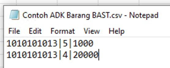 7. Dalam file ADK tidak terdapat header/judul. Baris pertama sudah berupa data isian.