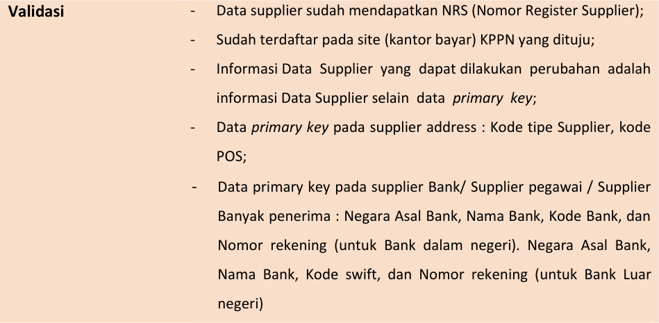 - Informasi Data Supplier yang dapat dilakukan perubahan untuk level Satker / KPPN terbatas