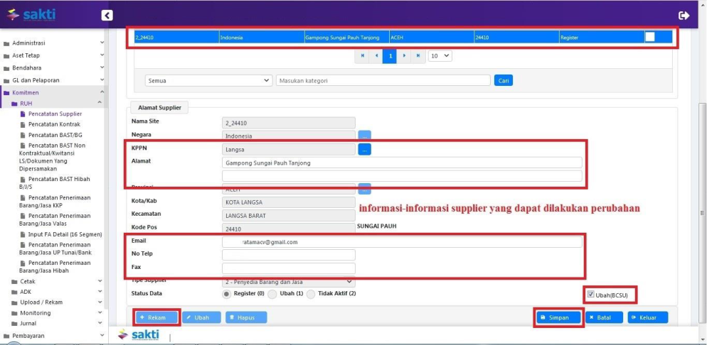 satker pengguna SAKTI dapat melakukan perubahan supplier dimaksud dengan melakukan