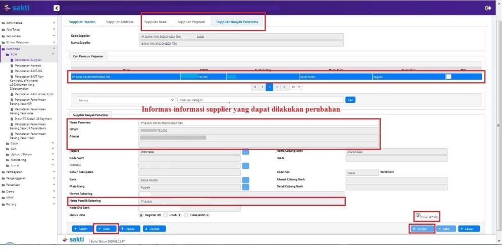 1.2 Perubahan Data Supplier Pada Site Bank/Pegawai/Banyak Penerima