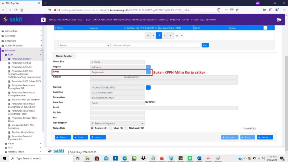 Khusus untuk perubahan informasi KPPN pada tab Supplier Address, tidak diperlukan melakukan